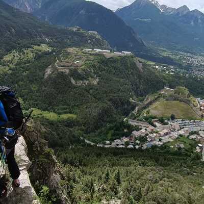 Grande voie du pilier gris au-dessus de la cité historique Vauban à Briançon.